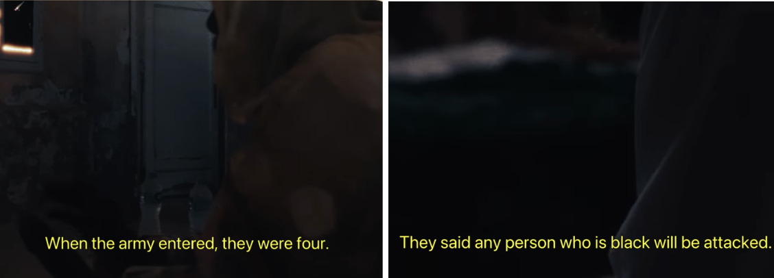 It is common for either the onscreen soldiers or the image’s caption to have to use racist language against perceived South Sudanese or Western Sudanese. In some cases, they directly or indirectly refer to Kanabi people specifically, but much of the time the slurs or insults used are non-specific.