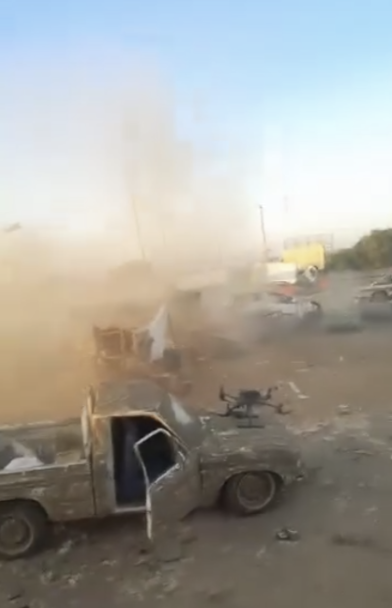 Importantly for chronolocation, the street is crowded with hundreds of soldiers, burning vehicles, and dead bodies throughout the day. The video to the left was posted at approximately 11am.