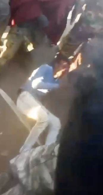 Another viral video from Police Bridge, filmed in the evening, shows soldiers beating a man in civilian clothing and interrogating him about his allegiances. They shoot him until he stops moving.
