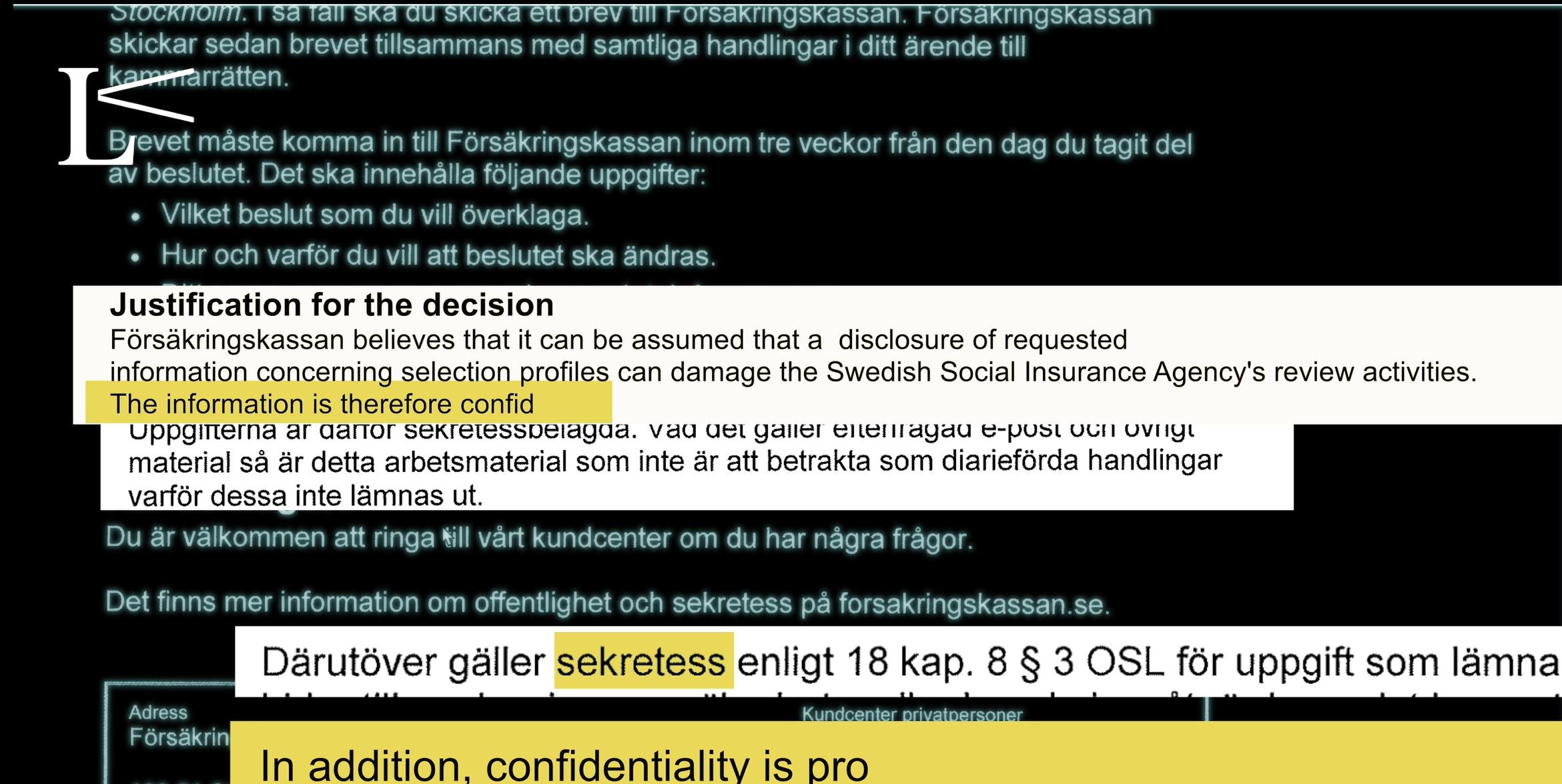 The Social Insurance Agency refused to explain why it created an equal treatment procedure if it does not consider an investigation to be a disadvantage, simply responding it chose to do so because it was “appropriate.” The agency did confirm in an interview that it uses the equal treatment procedure, but refused to disclose how many times it has been used in practice. It declined to share the results of its equal treatment procedure, arguing that disclosure could aid fraudsters in gaming the system.